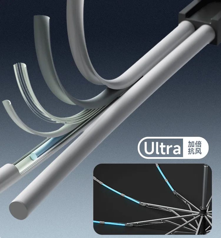好的伞骨材质强度高、韧性高,不易被吹散架!