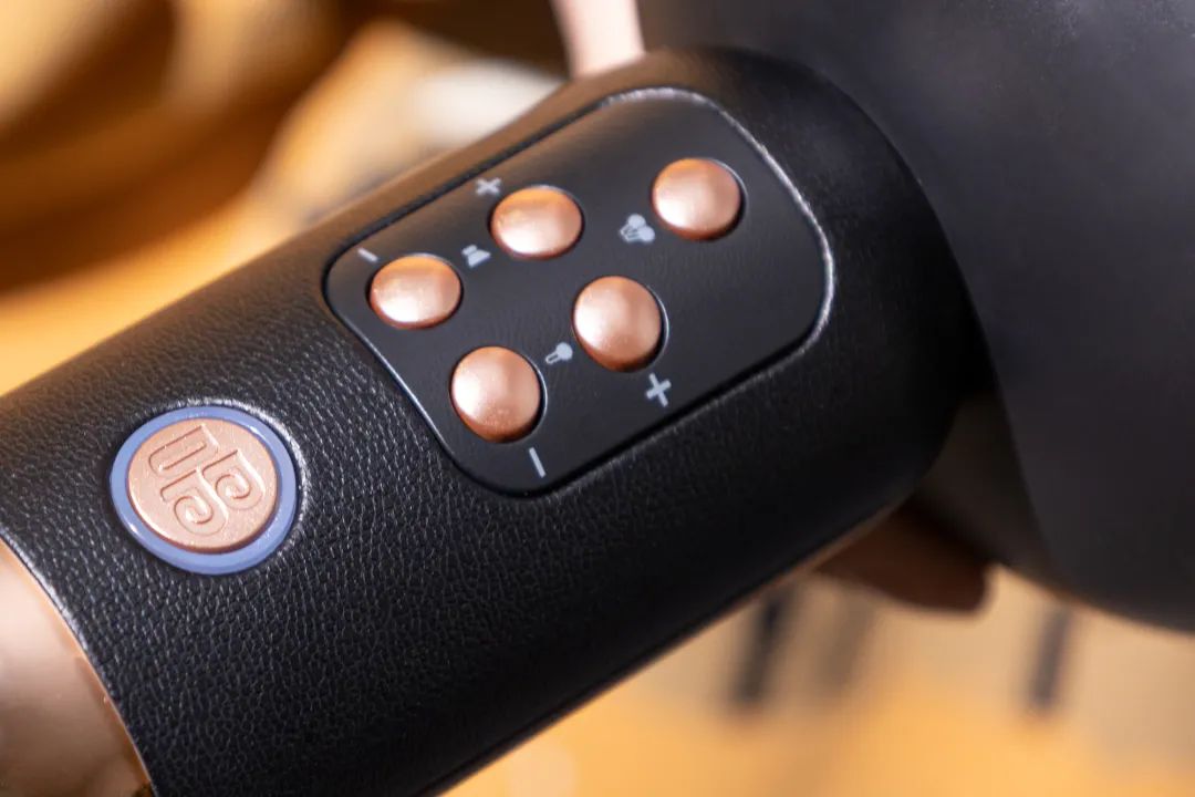 唱吧小巨蛋的手感也特别棒,皮质手柄,握着舒适有质感。
