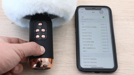 操作简单,和唱歌功能一样,一键开启蓝牙,手机马上搜到,麦克风秒变家用音箱。