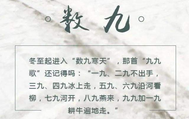 冬至这个名字很有意思,冬——至,也就是冬的极致,但是我们都知道从冬至到立春还有小、大寒,而且我们的传统是从冬至数九,就是说冬至这一天开始交九,俗语说的冬练三九这个九,从冬至开始一共数九个九天,到三九最冷。