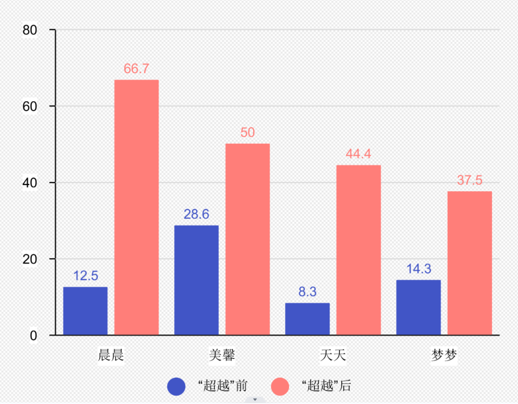 加入”超越“前后阅读蓝思值增长率对比图(L/M)