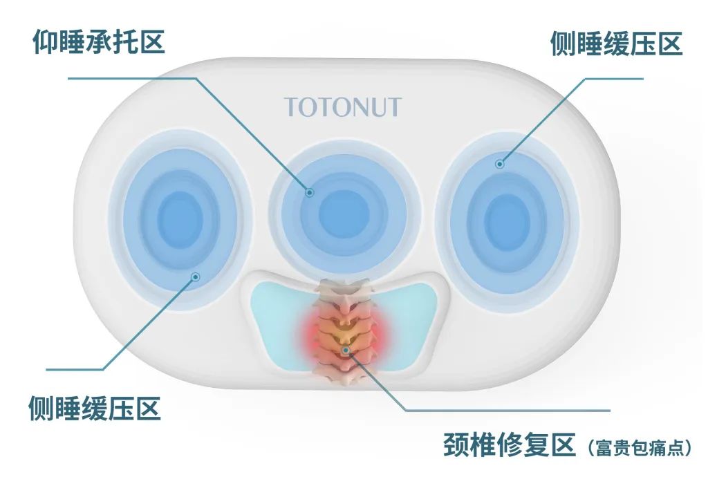 特别设计了颈椎修护区,就像枕头上又额外增加了一个颈椎专用的小枕头!