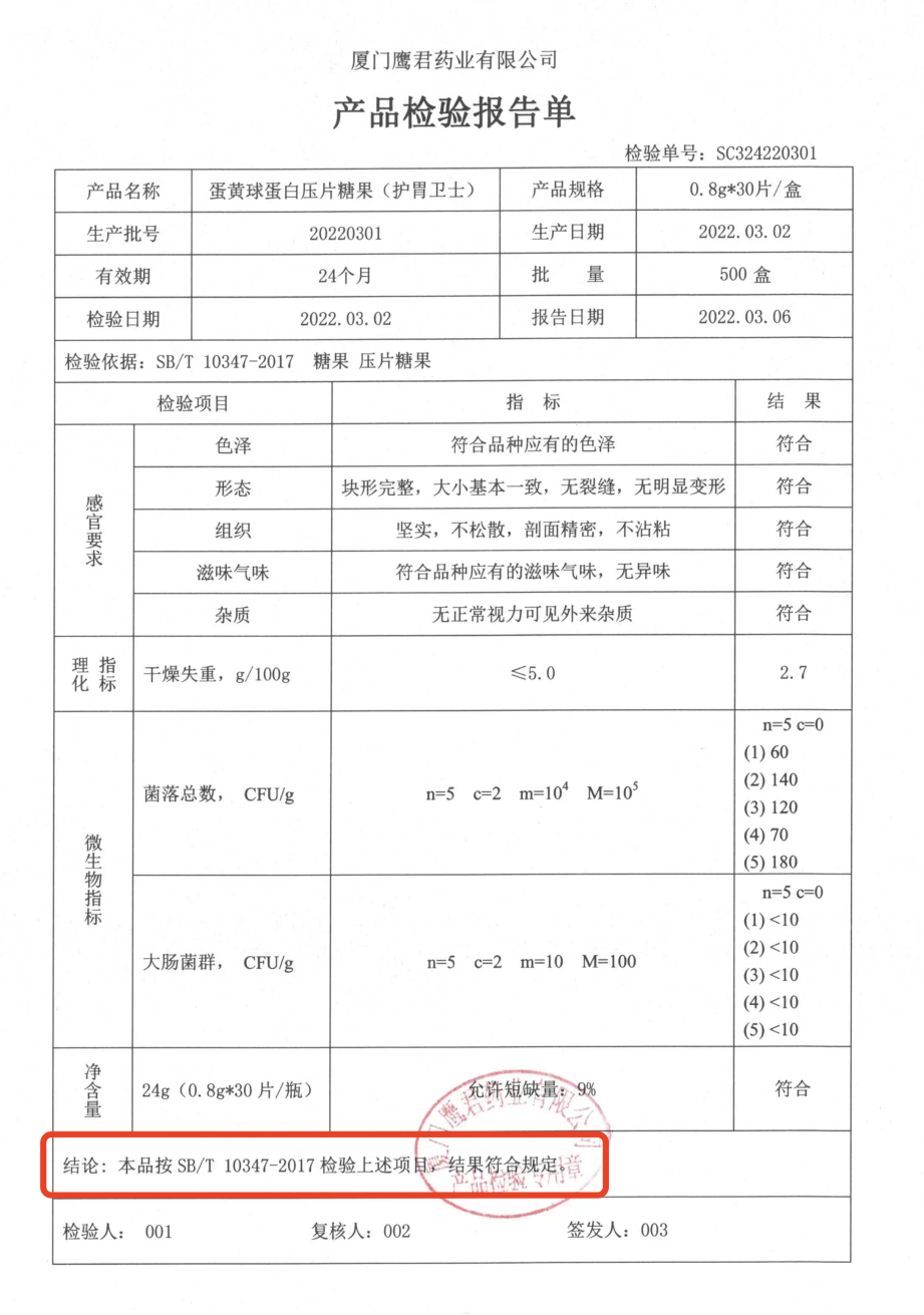 拥有独立实验室,生产设备、流程都是严格遵循生产管理规范,每一个环节都经过严格质检,保证每一瓶含片的质量。