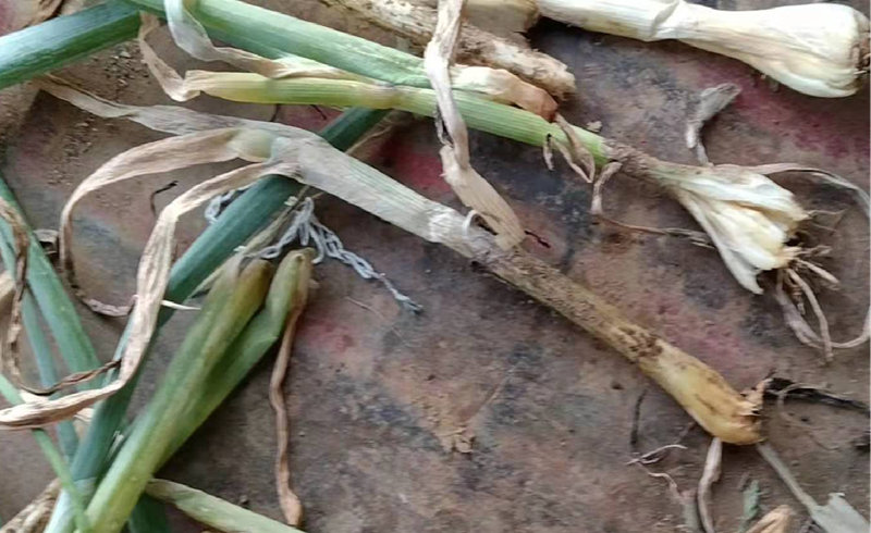 葱白腐病主要危害叶片、茎和鳞茎,整个生育期都有发病几率,幼苗4-6片叶至收获前期均可染病。