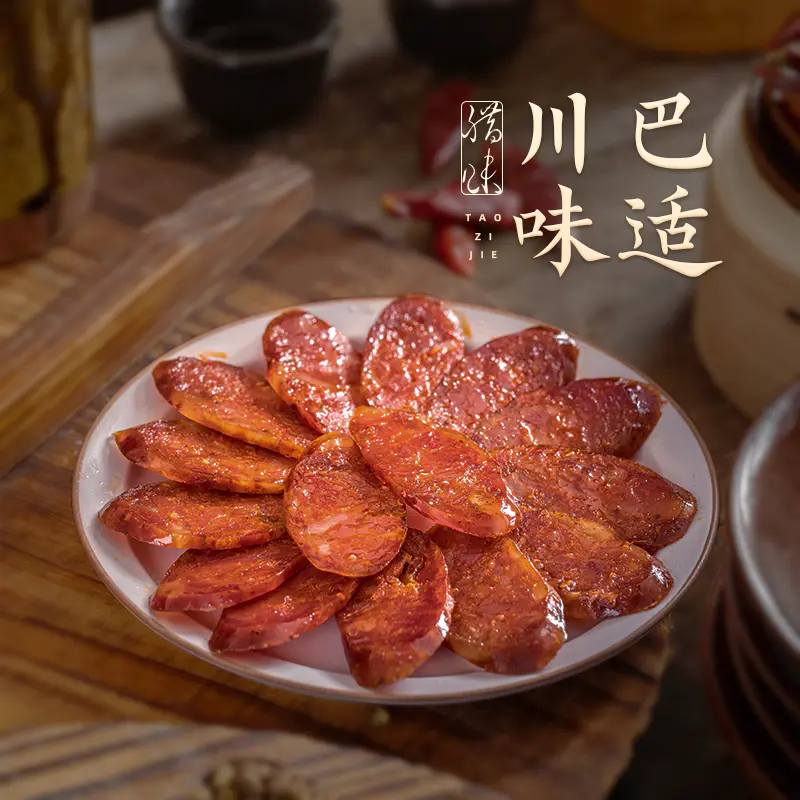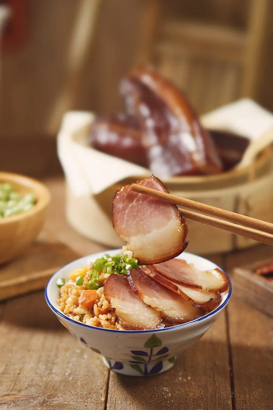 采用鲜肉制作,确保每一块腊肉都是保持了最原始的鲜嫩口感。经过严格的制作工艺,将肉块腌制,然后使用柴火慢薰,散发出浓郁的烟熏风味。每一口肉都包裹着四川的独特风情。