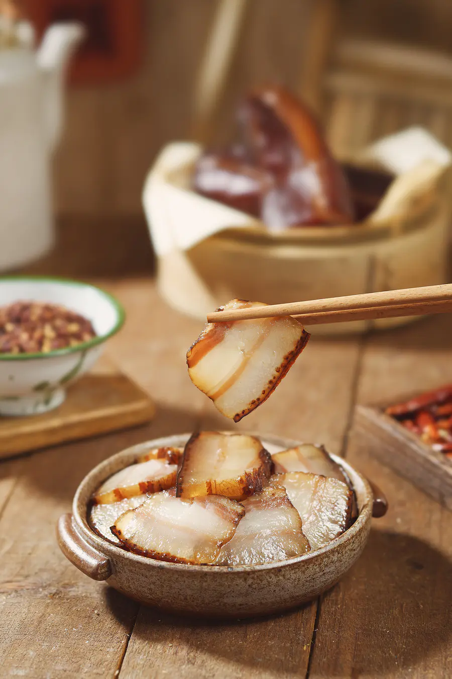 在四川有独特的地域语言,以及丰富多样的风味特色。这种烟熏腊肉正是四川乡土文化的一种体现。无论是与家人朋友一起分享还是作为节日礼赠,都是一道独特的美味佳肴~