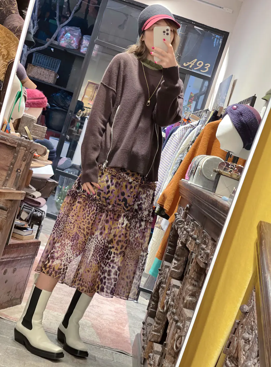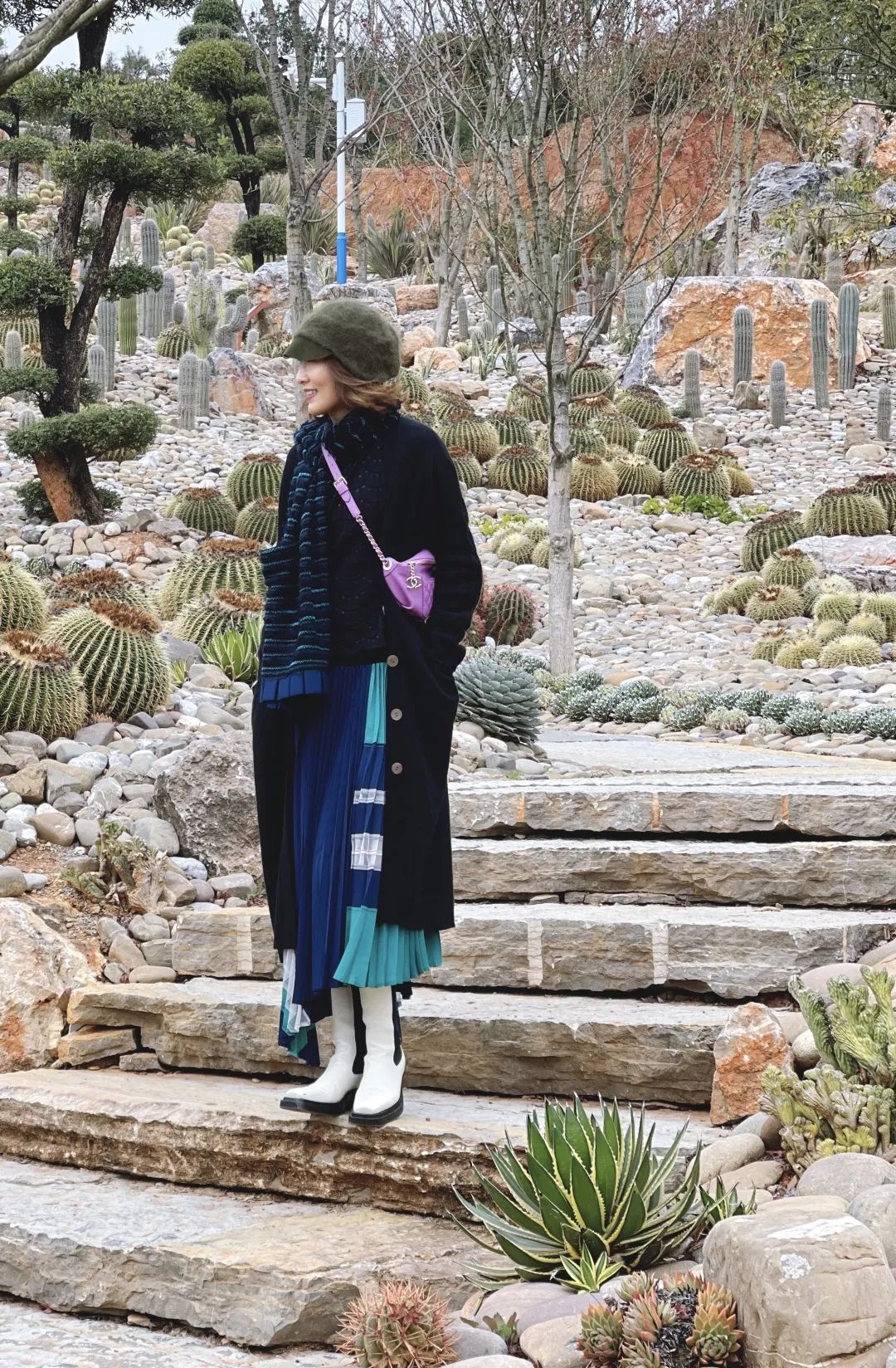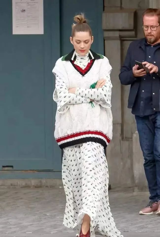 大毛衣+轻薄半裙 这个经典的“头重脚轻”搭配模式相信仙女们都不陌生。