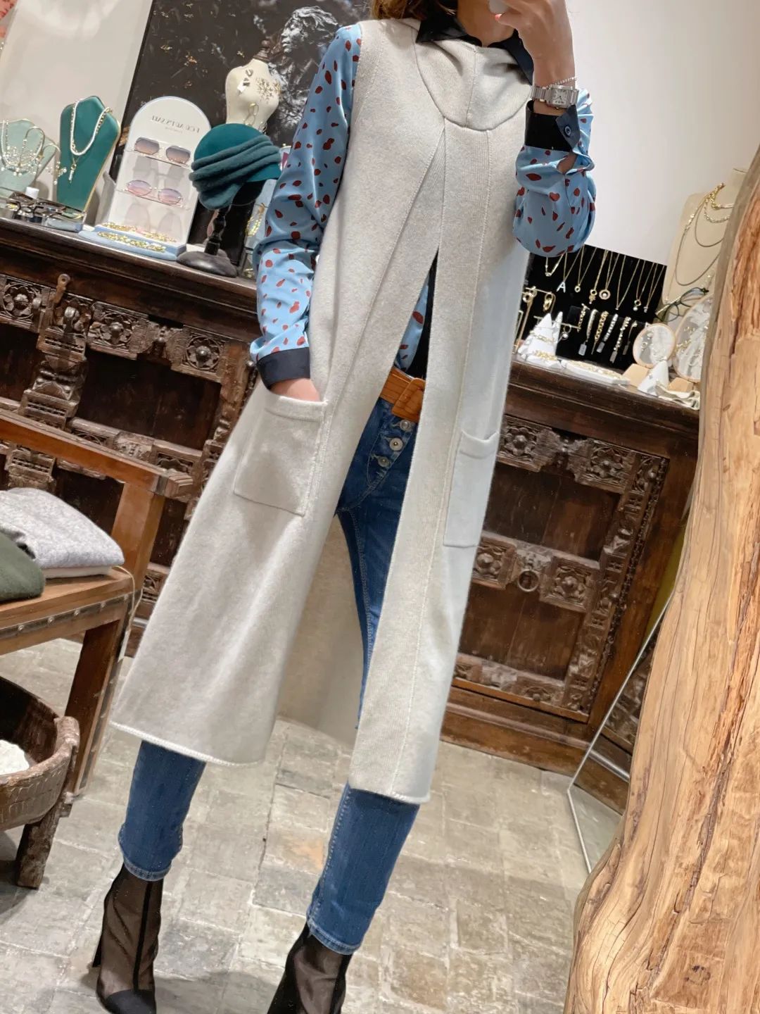 既方便叠穿外套,不会袖笼里挤挤的,又属于非常规款,很容易叠穿出处于不同的效果。