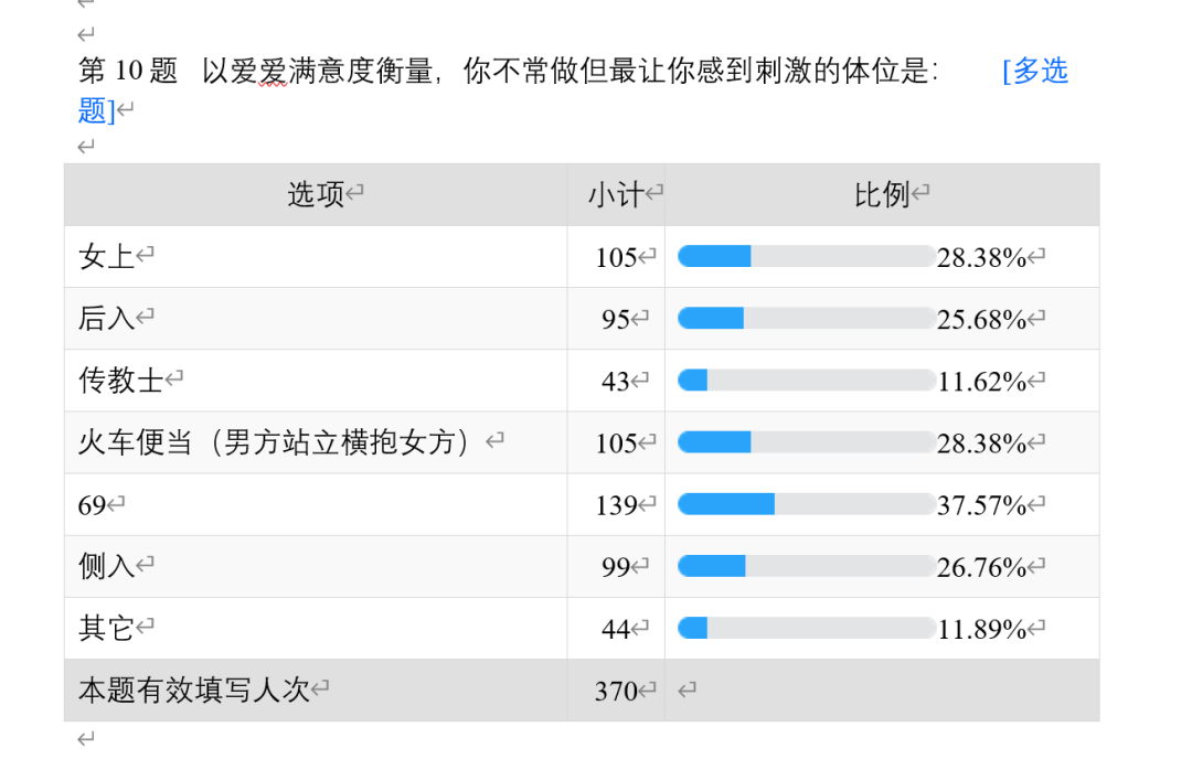 在我们一份370人参与的“关于爱爱中,你不常做但最让你感觉刺激的体位”,