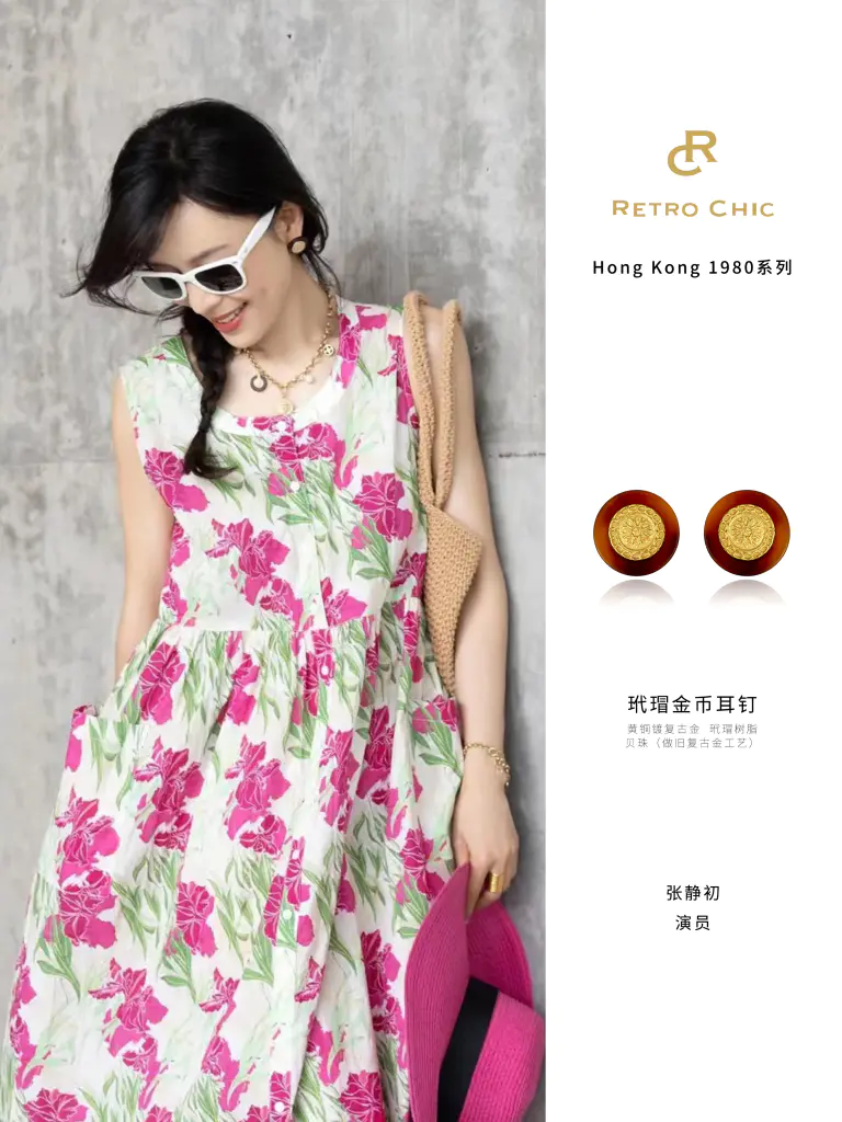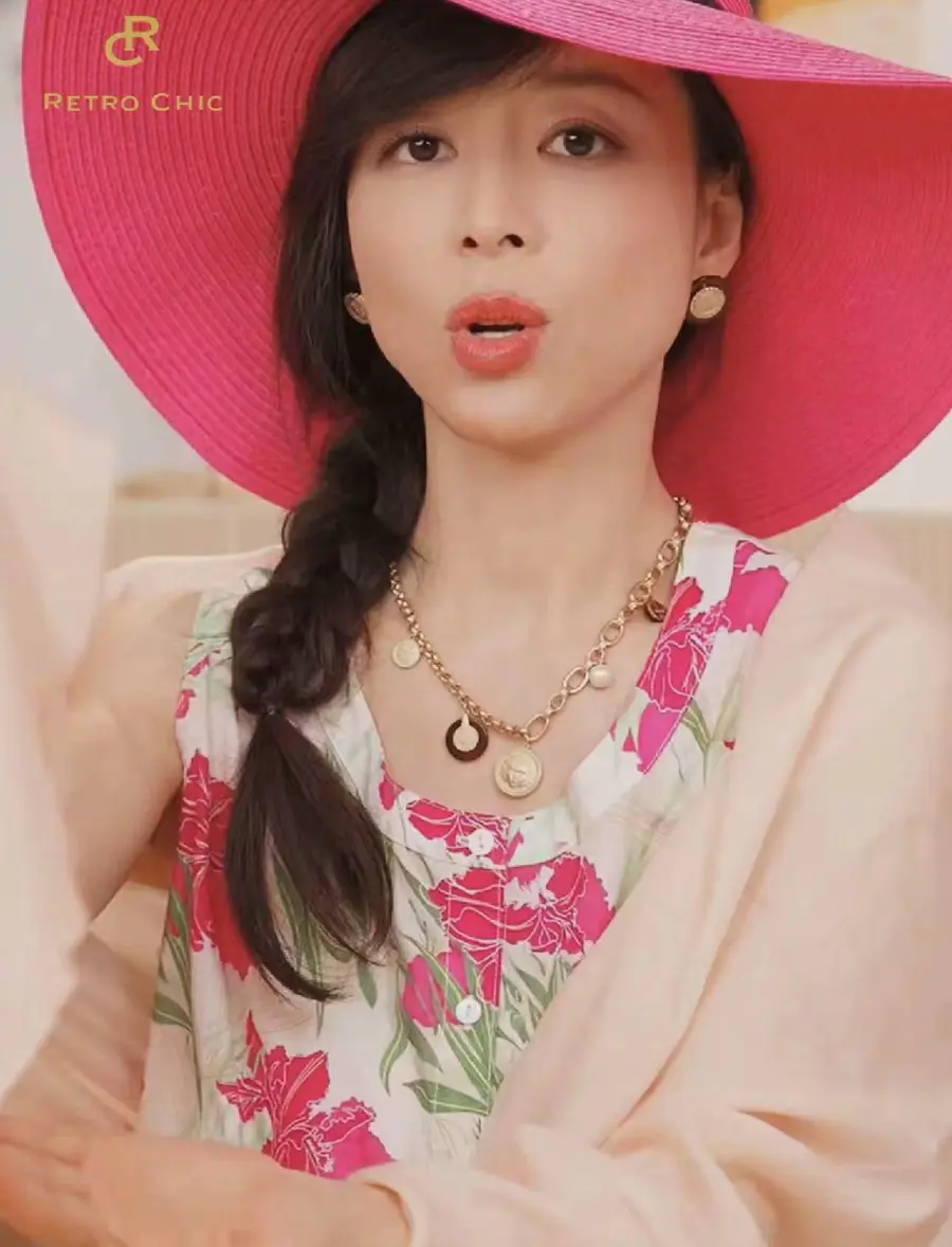知名演员@张静初 佩戴Retro Chic Hong Kong1980系列 | 玳瑁金币满天星项链&玳瑁金币耳钉&玳瑁金币满天星手链