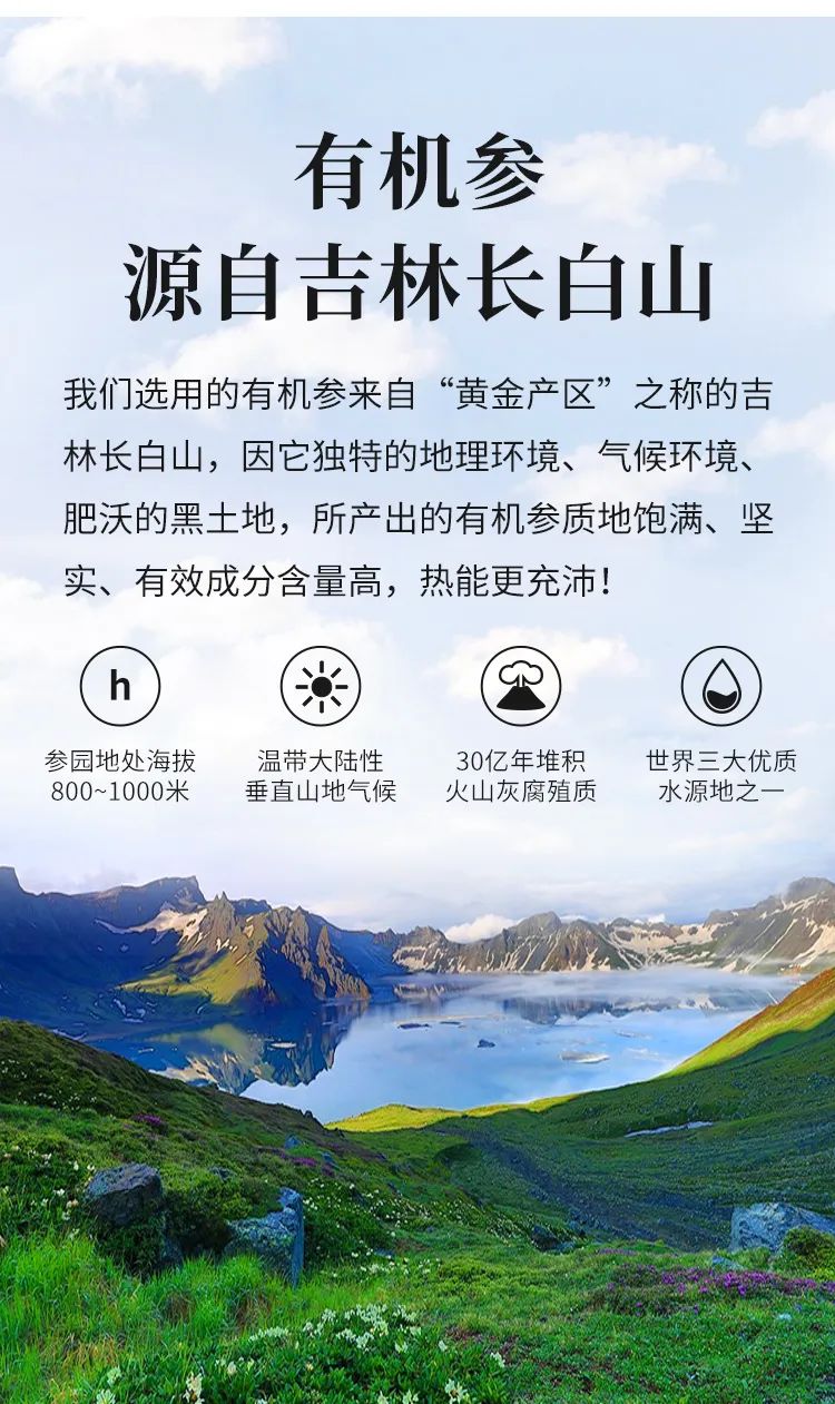 日就月将团队与全球有机人参领导品牌——加一健康合作,共享加一健康“长白山有机人参种植园”。种植园位于北纬41.5°,“世界人参黄金产区”之一的长白山山脉,未经污染的空气与水源、层层密布的针阔叶混交林,以及养分充足的腐殖质土壤,为人参生长营造了一个非常适宜的环境。