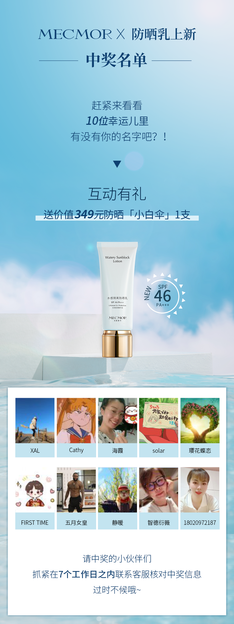 防晒乳中奖名单公布