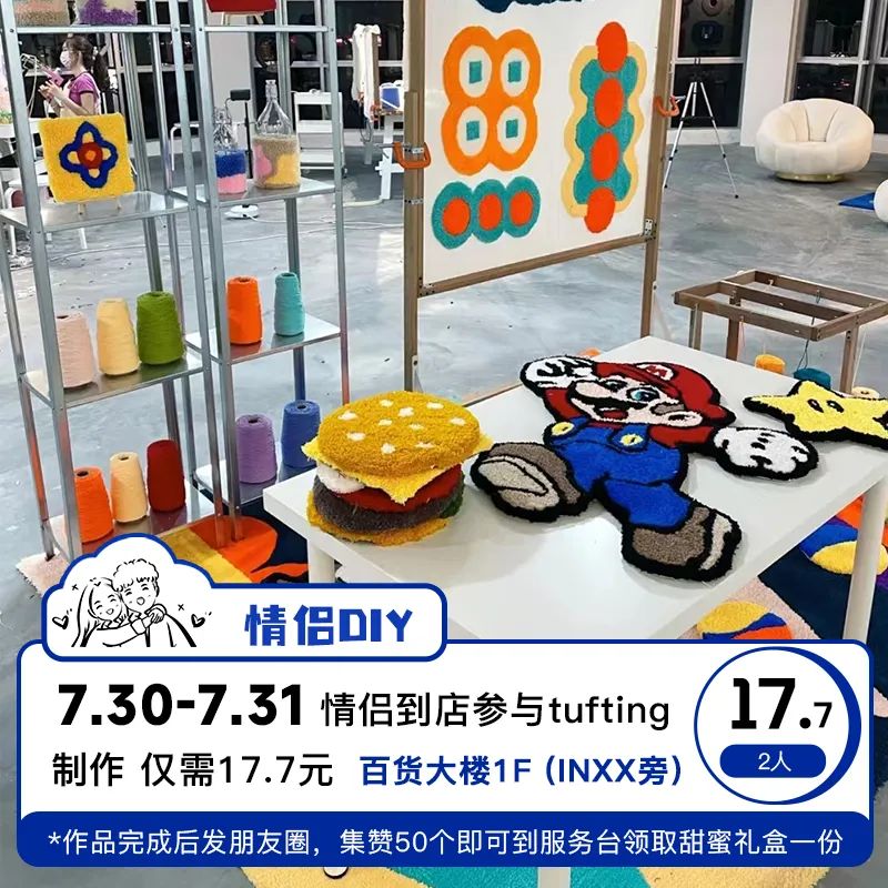 ①用毛线记录爱的甜蜜,侣到店参与tufting制作
