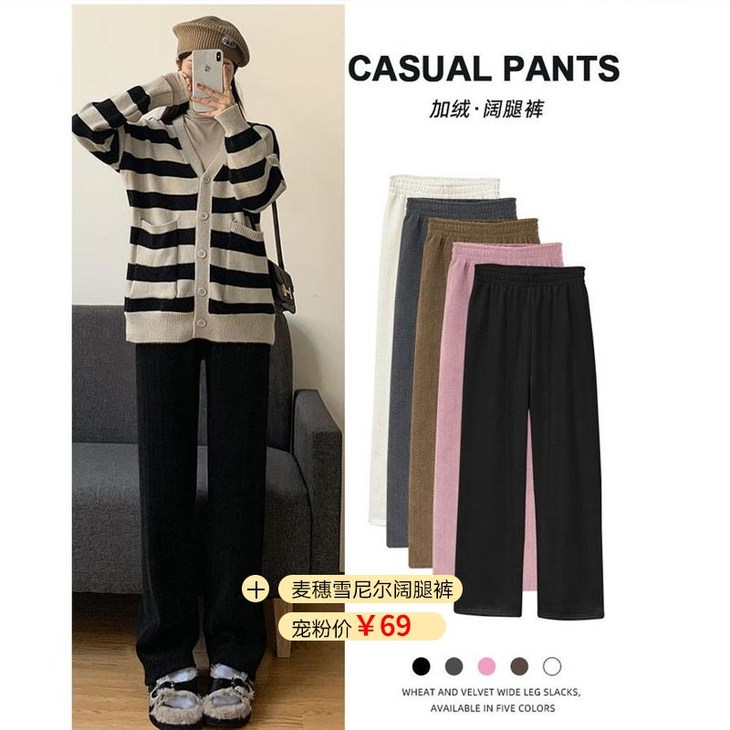 文案:谁的冬天还没一条暖呼呼的加绒裤 🤩显瘦、保暖、百搭,直筒宽松版型把小粗腿都隐藏在裤管里,塞秋裤、打底裤都不显臃肿!