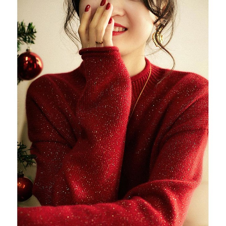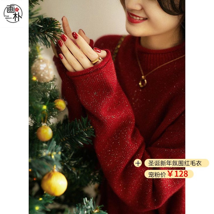 文案:圣诞、跨年怎能没有一件红毛衣呢🎆藏在细节里的金色纱线混纺,近距离若隐若现blingbling,阳光下像编织的璀璨星河,更美✨