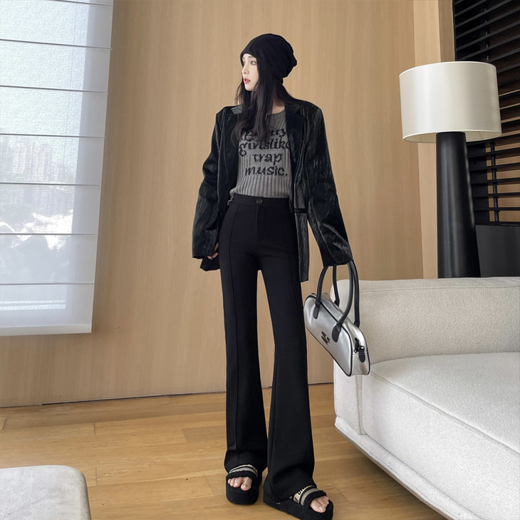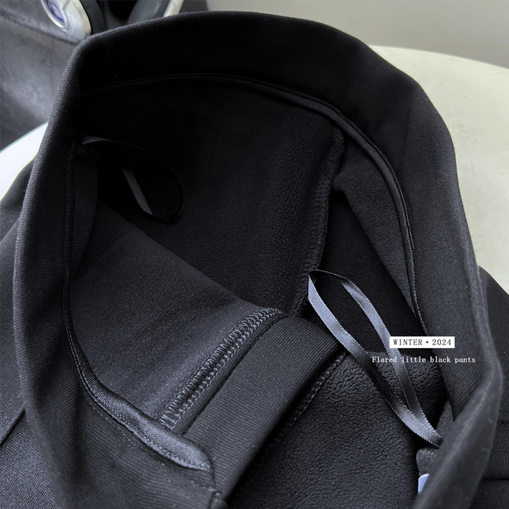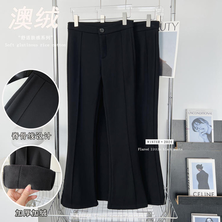 文案:拍照不用苦苦修腿的心机小黑裤👍修身微喇裤型隐藏腿部缺点 ✅裤身设计了中线和双侧线,视觉上轻松显瘦10斤!