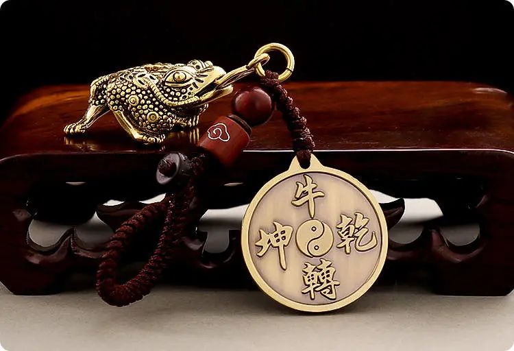 【牛转乾坤挂饰】最为突出的,便是采用先进工艺开模铸造的纯铜钱币,铜钱正面的两只牛首尾相连,形似太极,势如乾坤,有着牛年能旺运转运,旺势如虹的美好寓意!
