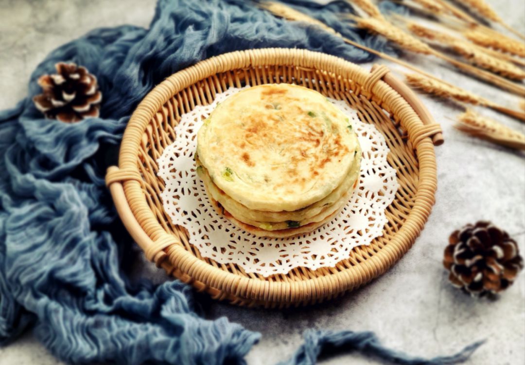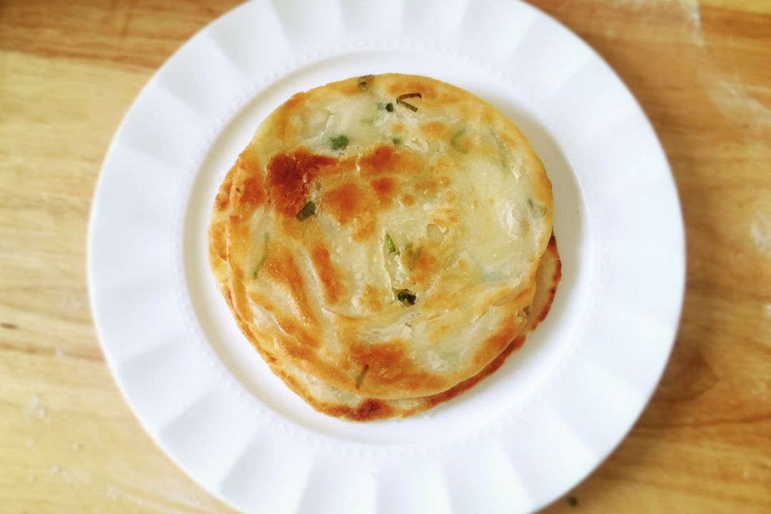 葱花千层饼是山东名吃,做好的饼层层分明,用筷子挑起中间会呈螺旋状,饼面金黄诱人,夹带着葱香,咬上一口,外皮酥脆,里层劲道,满口留香,好吃极了!