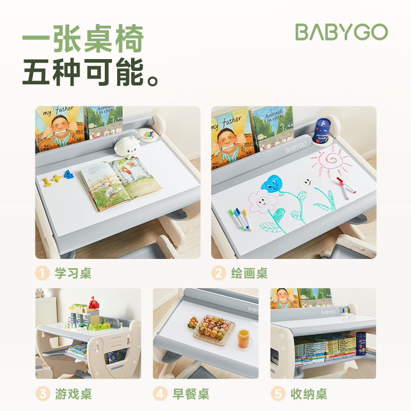 别焦虑!Babygo全新「成长型多功能学习桌」来了!