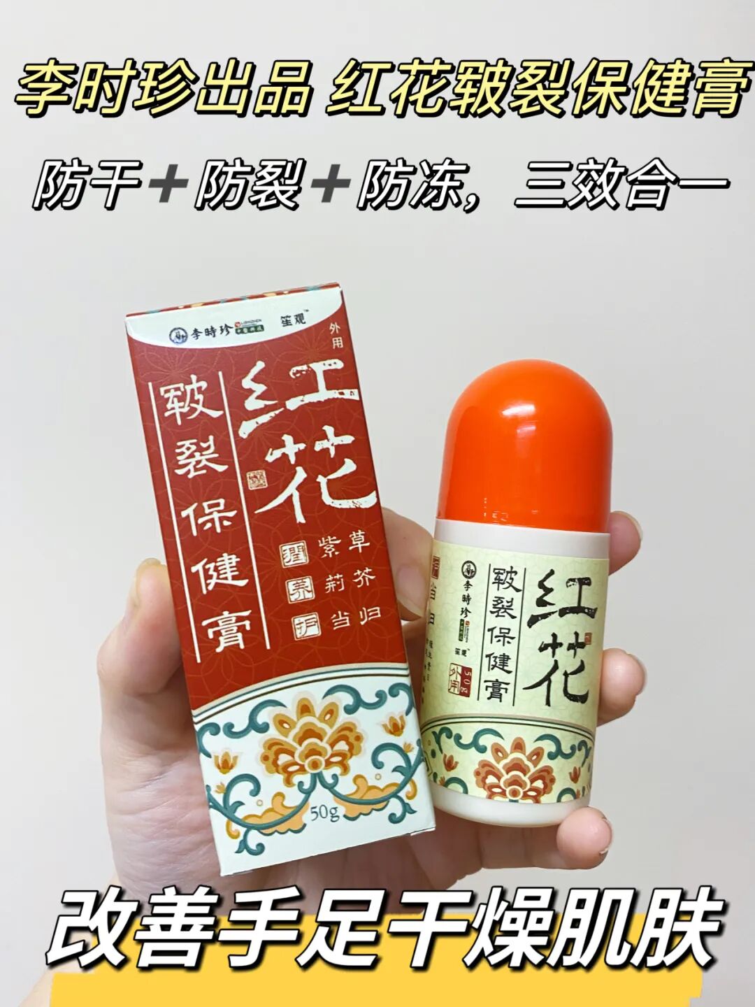 直到在闺蜜的安利下,发现了这款好用、温和不刺激的李时珍出品的【 红花皲裂保健膏】!