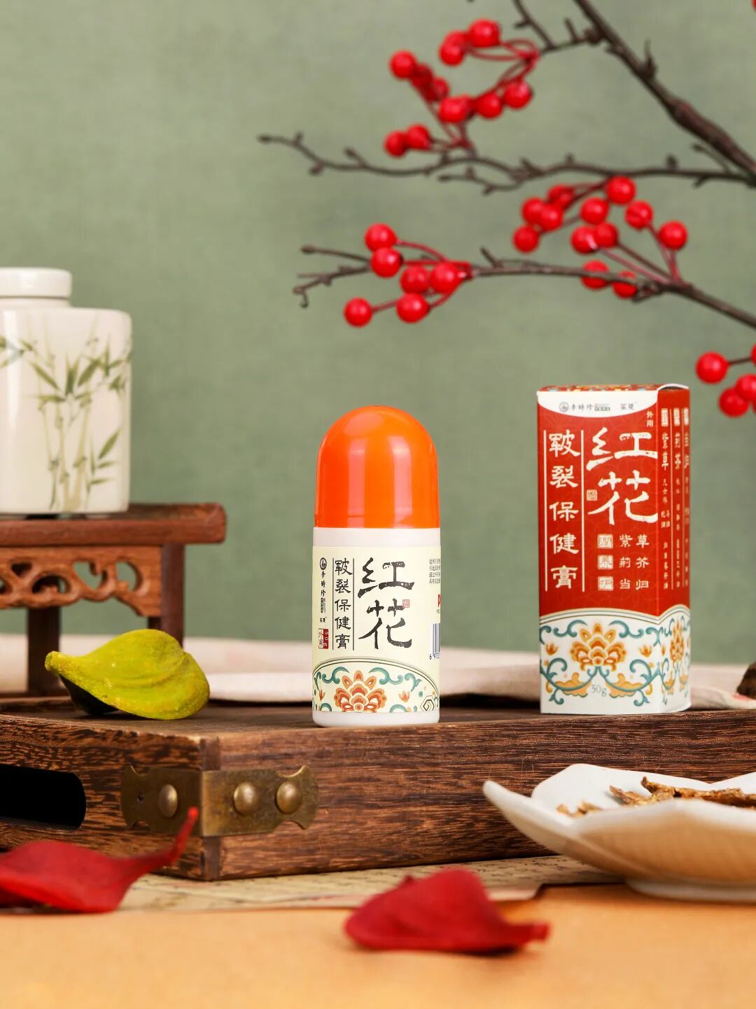 团队基于《本草纲目》等精髓,以草本植物配方为主研制出这款红花皲裂保健膏。