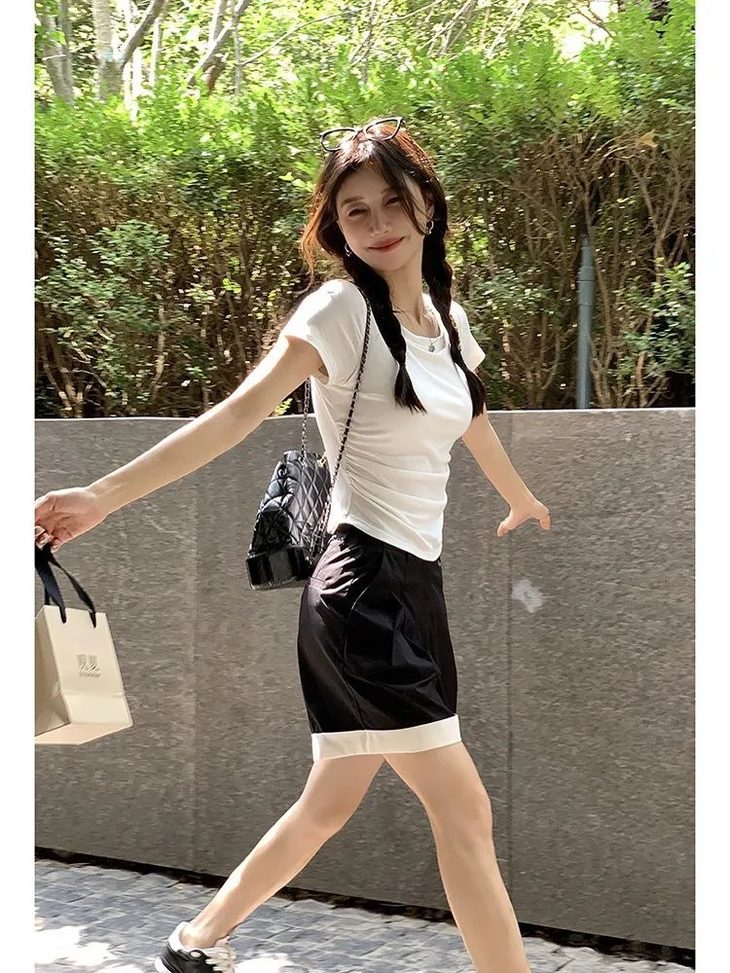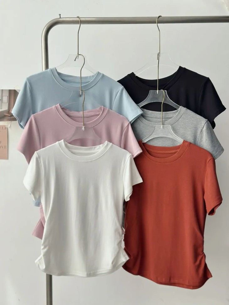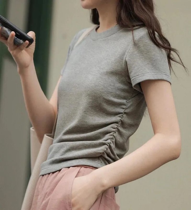 衣身腰部拉褶有弹力,巧妙的遮挡肚子的赘肉,还能勾勒出好看的曲线!摆脱了传统T恤的呆板和俗套感。