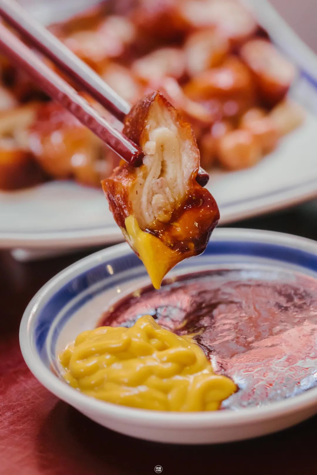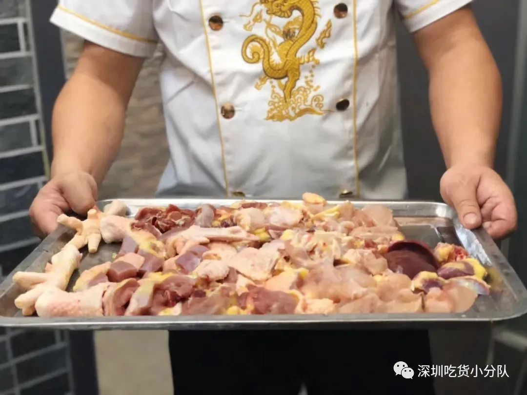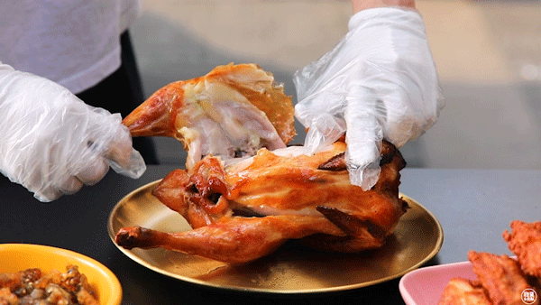 太豪七,是的就是你想的谐音梗。所有鸡都现点现烧,一炉大概要18分钟。烧好后整鸡上桌,可以自己动手撕,也能找店员帮忙。轻轻一撕就能看到汁水横流,鸡皮薄能透光。