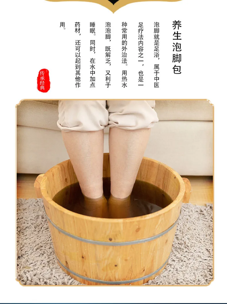 脚部有很多脉络,泡脚时可以刺激反射区促进血液循环达到舒缓疲劳和疗愈效果!看似不起眼也不“高级”的泡脚却对身体有非常多的好处:有时候工作压力大导致难以入眠,泡了脚以后全身的神经都感觉到了舒缓,舒服到想要立马倒头就睡!如果你经常觉得乏力没精神、手脚冰凉,又或者是经常失眠,还总是口臭、气色差,甚至一些女生还有痛经问题的话!那你就要开始重视起来了,赶紧把泡脚这件养生大事提上日程来!就连很多明星也非常喜欢泡脚,活在养生圈的吴昕,在节目上说自己也致力于推广泡脚这件事,可见对身体非常好。泡脚不仅能够舒缓神经,减轻压力,更能够除去湿气,去掉寒气!体内湿气不除的伤害身体而且而已造成水肿肥胖,张嘉倪就在节目中分享过自己产后坚持泡脚来除湿驱寒、减肥!吴昕也是因为长期坚持泡脚的原因,摆脱了水肿大粗腿!但泡脚也是一门学问,并不是所谓的只用纯热水来泡,想要起到效果,就一定要选对泡脚药包才行!今天就给你们带来这款既省时省力又功效十足的足浴包,古宛堂精选二十八味中草药,特别制作了这个二十八味草本泡脚包!古宛堂精选28味天然草本药材,精心配伍,上等道地名贵选材,看的见的好品质!•老姜:祛风除湿、维护肾脏功能、延缓衰老、散寒止疼;给住校的孩子带一包,疏解繁重的课业压力,获得更优质的睡眠;泡脚之所以有这么多令人惊喜的功效,有很大原因是因为所选择的泡脚包决定的!泡脚包里的成分、配比以及药材的品质,统统都能影响到整个泡脚包的功效!古宛堂这款的成分主要是:艾叶、老姜、川穹、益母草等等。二十八味的升级调配它的祛湿排毒的功效高于很多普通泡脚包。