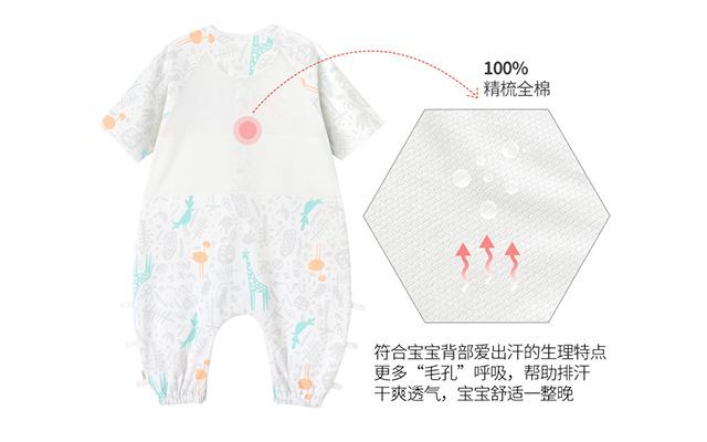 透气性非常好,把孩子睡眠时身体的热量和汗液迅速排出。