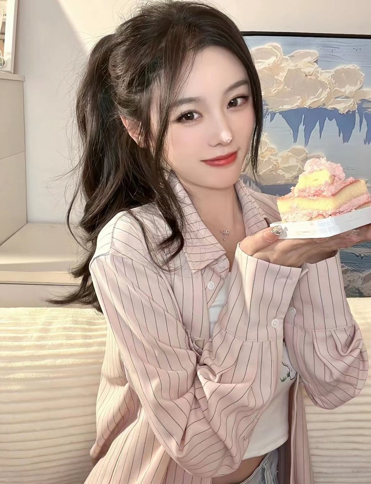 整个人看起来都粉粉嫩嫩的 还超减龄!