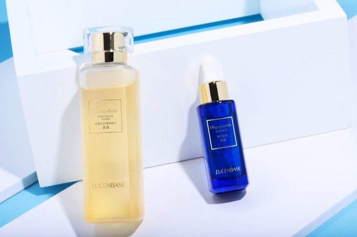 1.清洁后使用轻颜水,充分吸收后使用寡肽原液