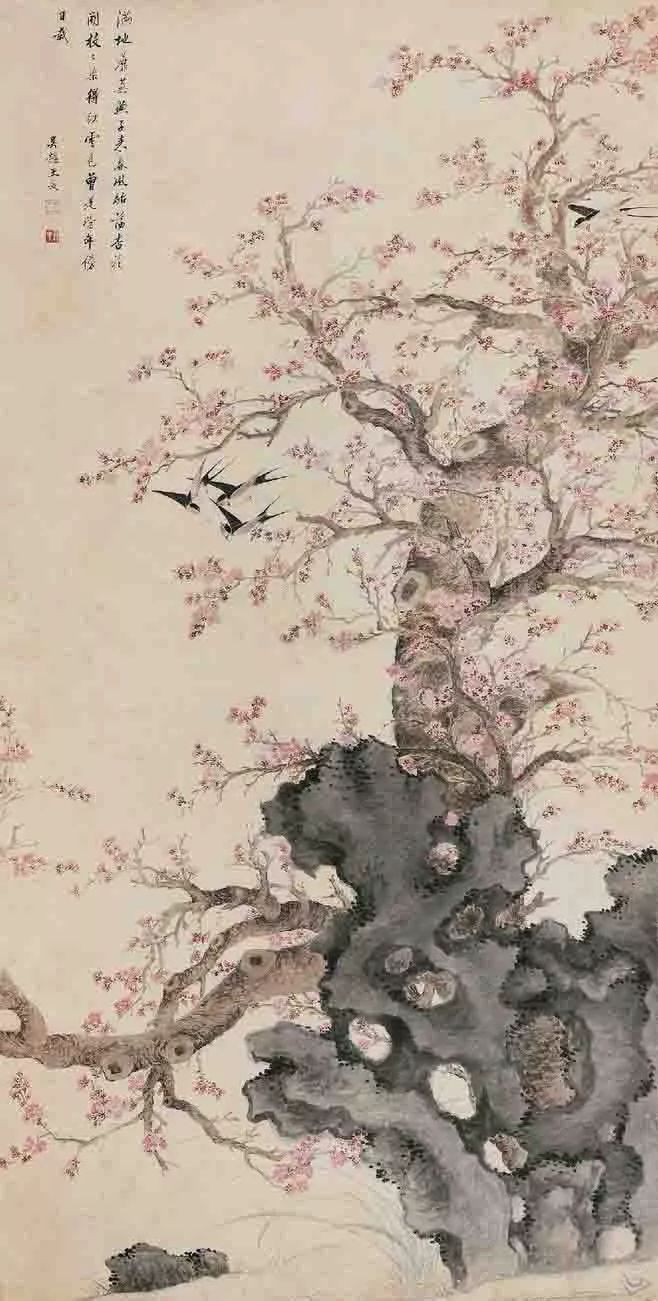 ...................................................................王武生性和乐平易,以诸生入太学,不屑于参与科举。15岁业已能创作巨幅画作,“使观者叹绝其妙”。他擅画花鸟,风格工整秀丽。对于宋、元、明诸家名迹,往往心追手摹,务得其法。清 王武 《水仙湖石图》 南京经典2011春拍 成交价103.5万元...................................................................成名以后,评者以为前辈陈淳、陆治“不能过也”。清初大画家王时敏对其作品极为称赞,认为“近代写生,率有院气,独勤中神韵生动,应在妙品中”。...................................................................王武所作花鸟,能得生趣,秀丽多姿,高贵典雅,尽显其功力之深厚;水墨没骨多取周之冕、陆治画法,只在点笔方面有所发展,与清初著名的书画家恽寿平齐名。恽长于没骨而王长于勾花点叶。...................................................................清 王武 《水仙卷》 北京卓德2011春拍 成交价66.7万元...................................................................王武 《红杏飞燕》 立轴 2014北京保利拍卖价:345万...................................................................王武传世作品比较多,为各大博物馆珍藏。著名代表作有《为紫谷画花卉册》《红杏白鸽图》《水仙湖石图》《菊花竹石图》《花竹栖禽图》《松竹白头图》《水仙拳石图》《鸳鸯白鹭图》等。...................................................................
