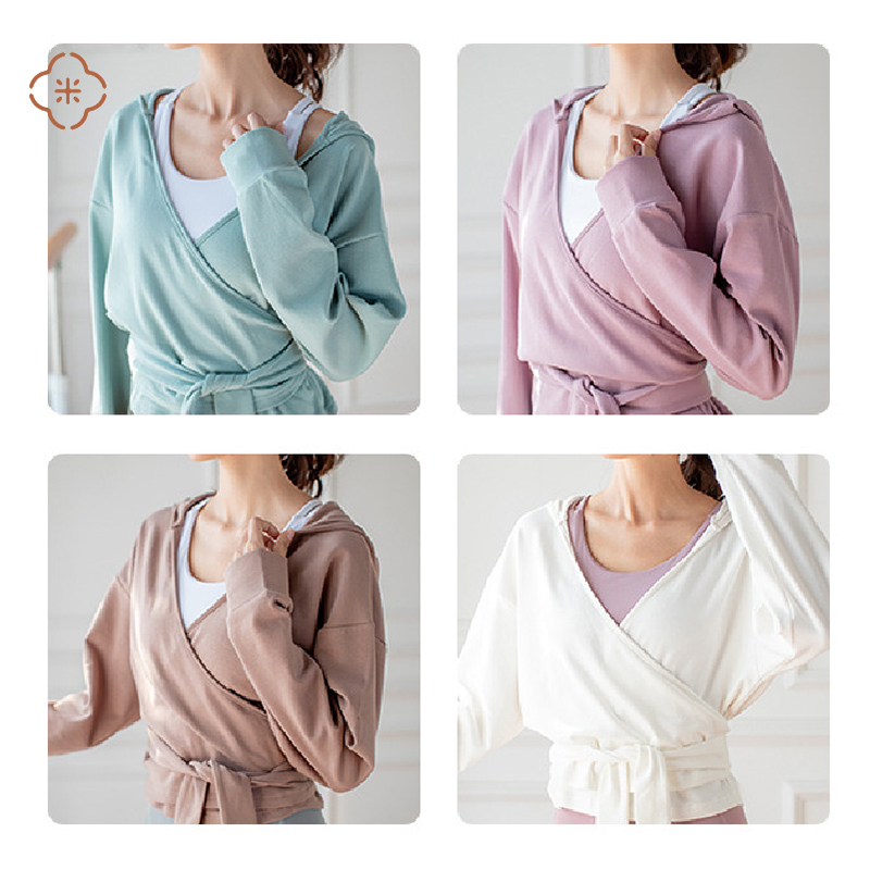 1.连帽斜襟系带款瑜伽外套,运动随心,肢体不受限