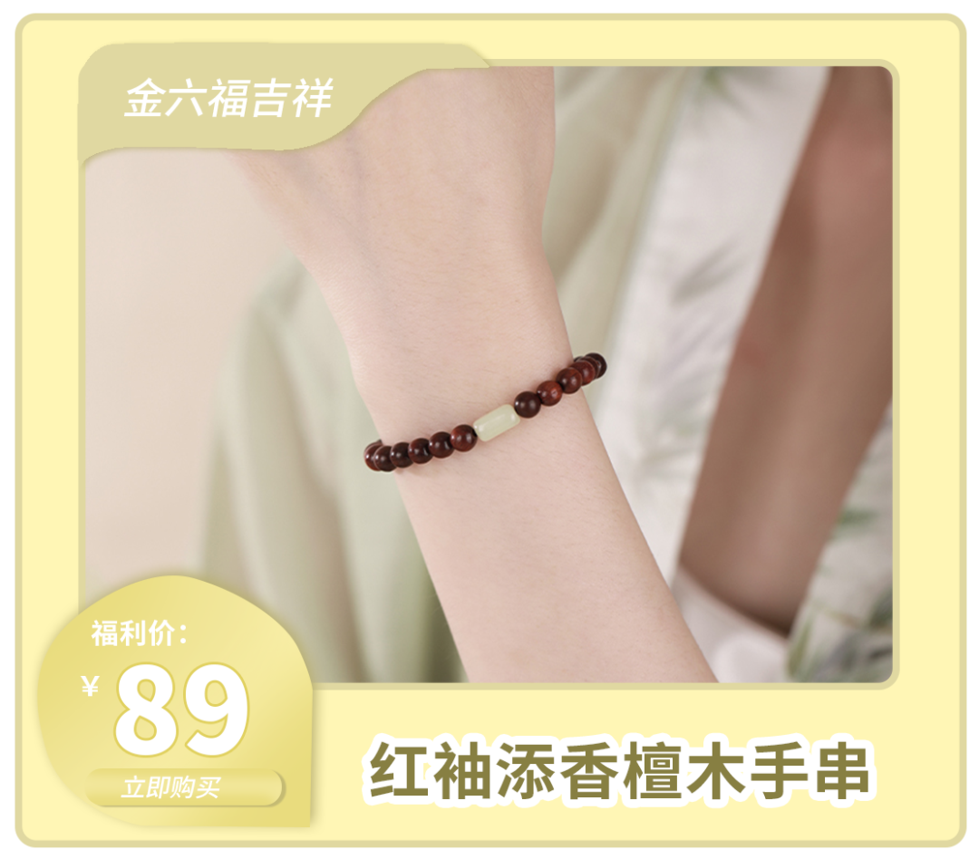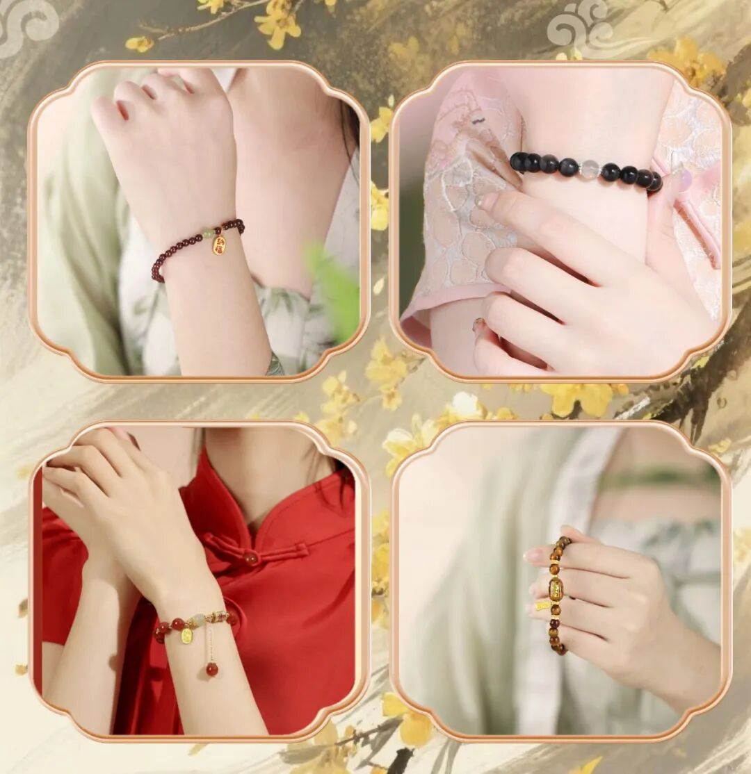 檀木制成的木质手串精致高级,点缀着珠子有层次不单调,妥妥的新中式氛围感搭子~