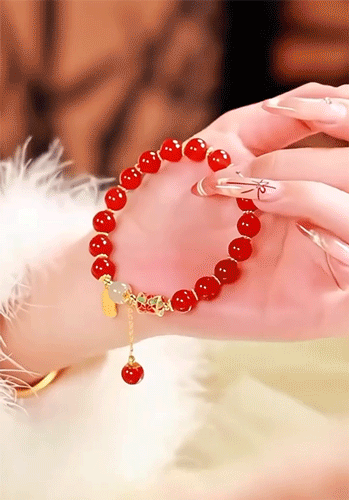 在纤细的手腕,挂着一条「红玛瑙」手链,贵气逼人、灵动优雅,哎呀妈呀给我美的!!一天低头看八百遍;