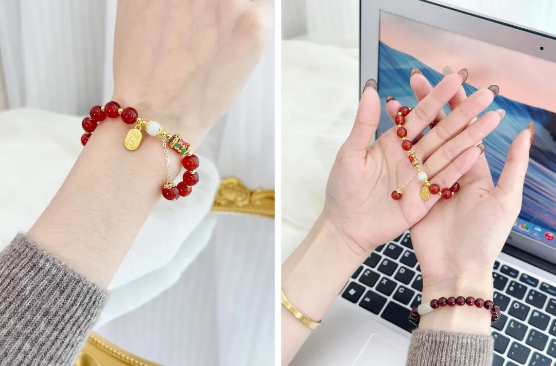 “玛瑙红很温润,美而不俗,戴在手上很有分量感!”