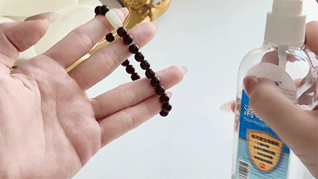 注意一下玛瑙水晶/檀木,可以沾水但不要泡水,如果沾到水就自然风干一下,因为咱是天然材质。不是塑料珠子,所以不建议长时间泡在水里的哈~