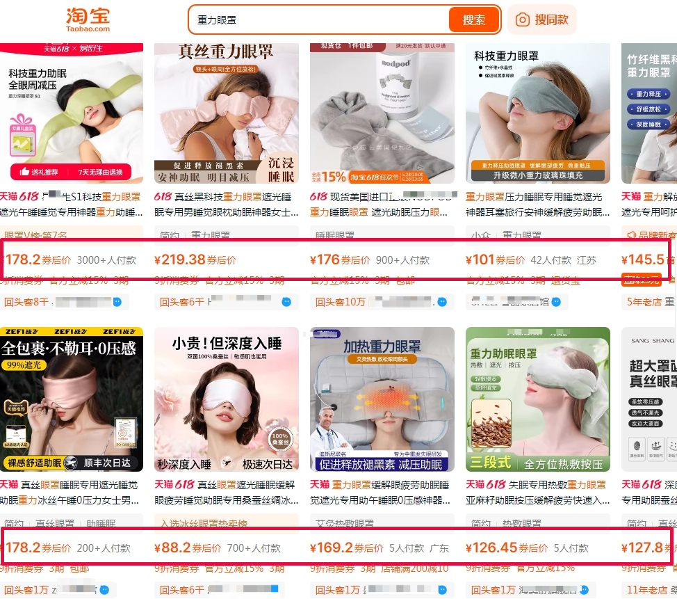 在某宝上随手一搜,好一点的重力眼罩都要上百一件: