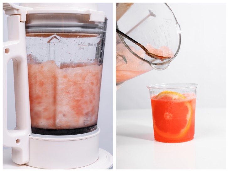 将茉莉花茶、蜂蜜、西柚果汁(果汁可以让沙冰颜色鲜亮)、冰块放入破壁机中,果蔬模式打成冰沙(打至2分钟,沙冰更丰富绵密);杯底放入捣碎的西柚果肉,西柚薄片贴着杯壁,将沙冰倒入杯中即可。