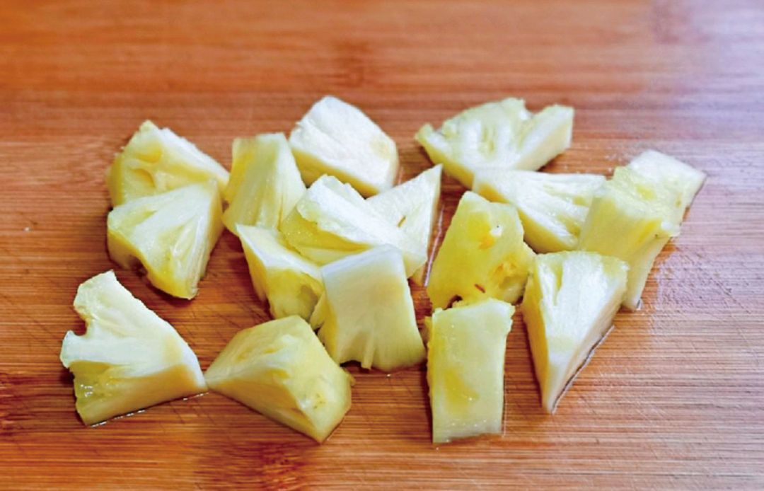 2、菠萝去皮切块;