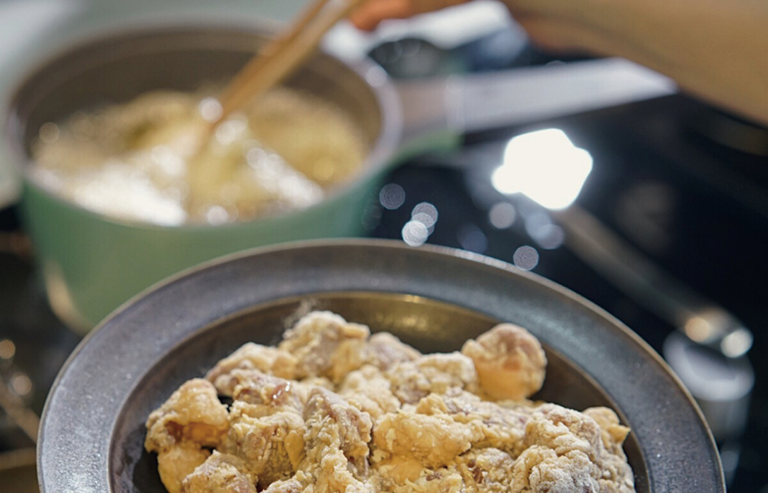 1、油锅烧至7-8成热(油锅上方有热气但无烟),开成中火一个一个下入肉粒炸,约1-2分钟,然后捞出沥油,再放入复炸一次(待肉粒漂上来后捞出);