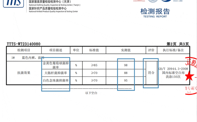 用它制成的内裤底裆可是有国家盖章检测报告认证的哦: