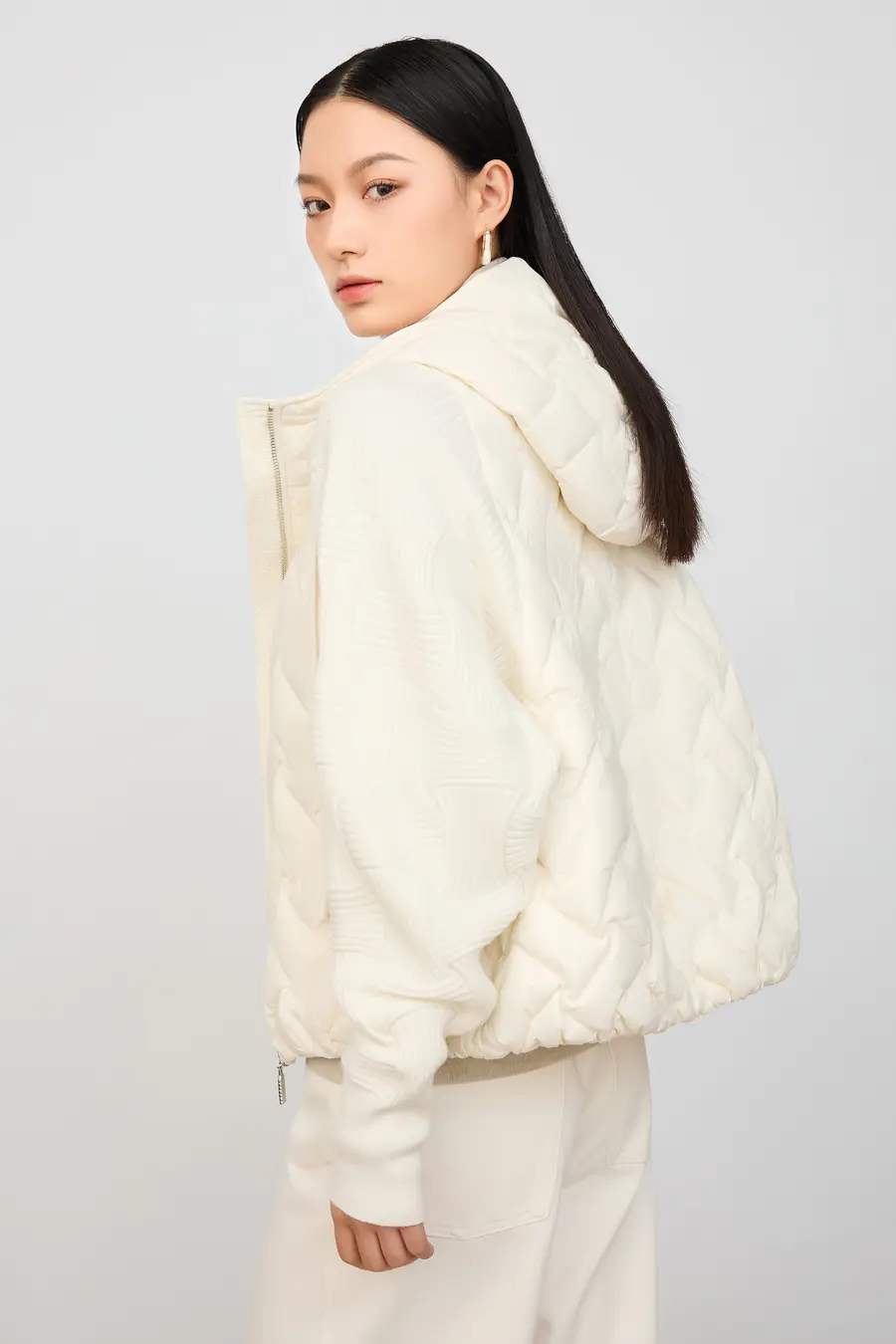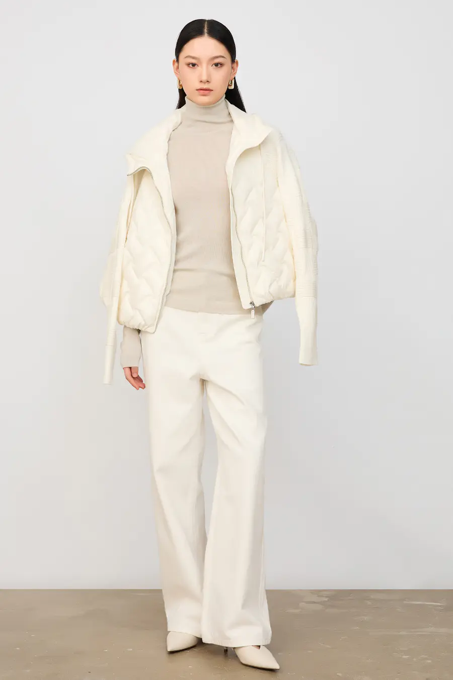 上衣:针织拼接白鸭绒轻薄款羽绒服