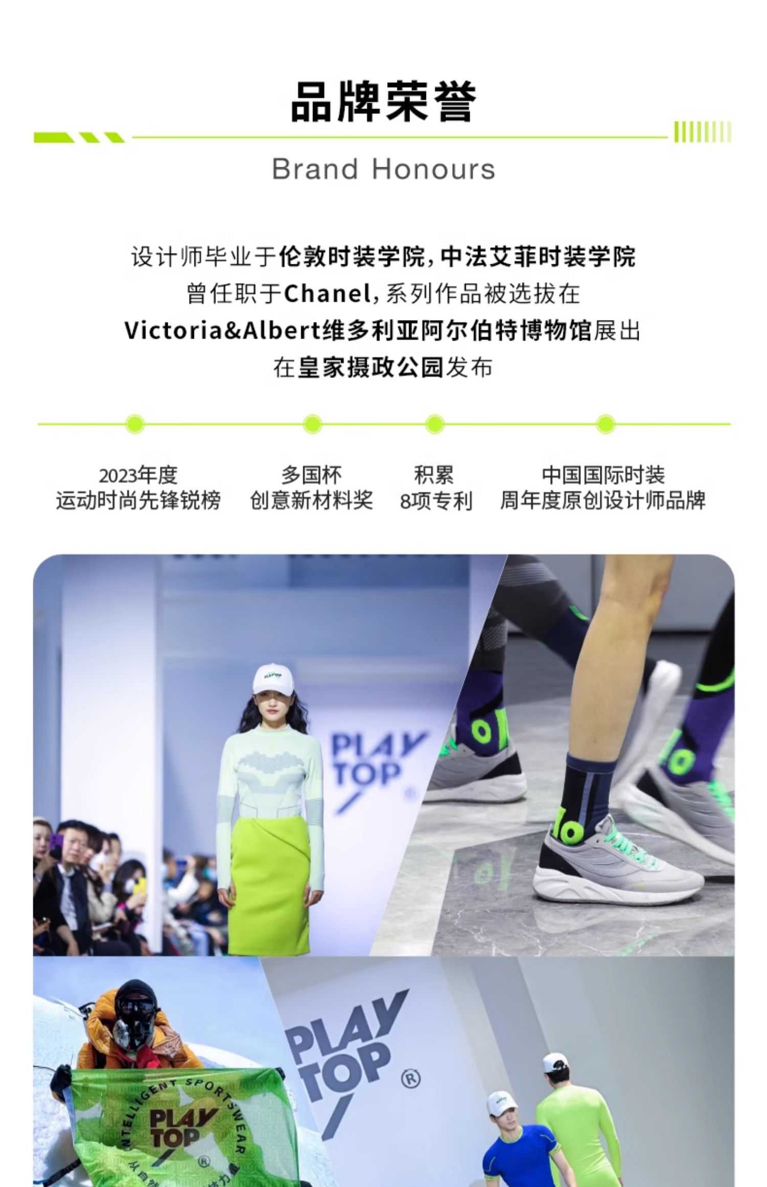 品牌斩获 “2023 年度运动时尚先锋锐榜”“多国杯创意新材料奖” 等多项荣誉,积累 8 项专利技术,在 “中国国际时装周” 上作为原创设计师品牌亮相,用专业度证明 “户外装备也能兼具美学与功能”。