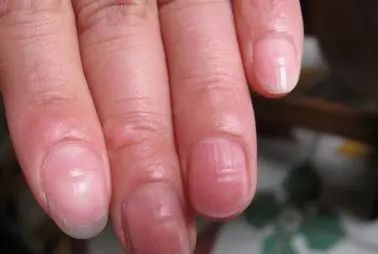 当指甲表面出现明显的凸出或是凹陷的棱线,