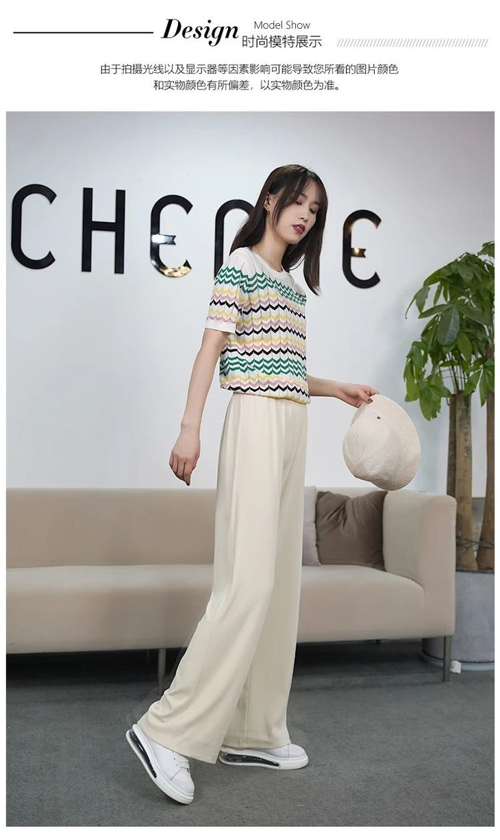它来自臣禾CHENHE,是一款专门为了“显瘦”而设计的坑条阔腿裤。