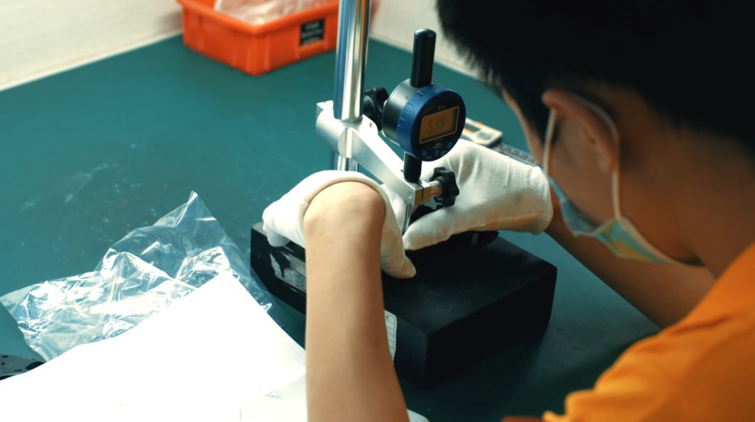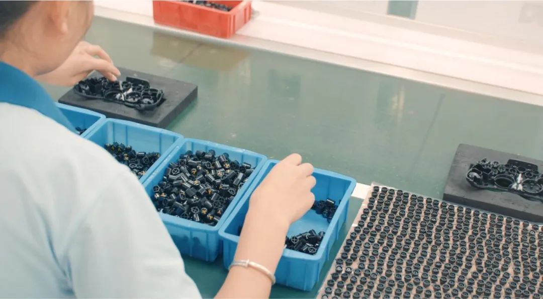 除了存放物料,来料检测车间还会检测手柄外壳等物料的孔位公差和圆度公差。我们要求模具公差精度小于正负0.05毫米,多一点少一点都不行,细致检查后通过测试的物料才能被送到后续的环节中进行生产。