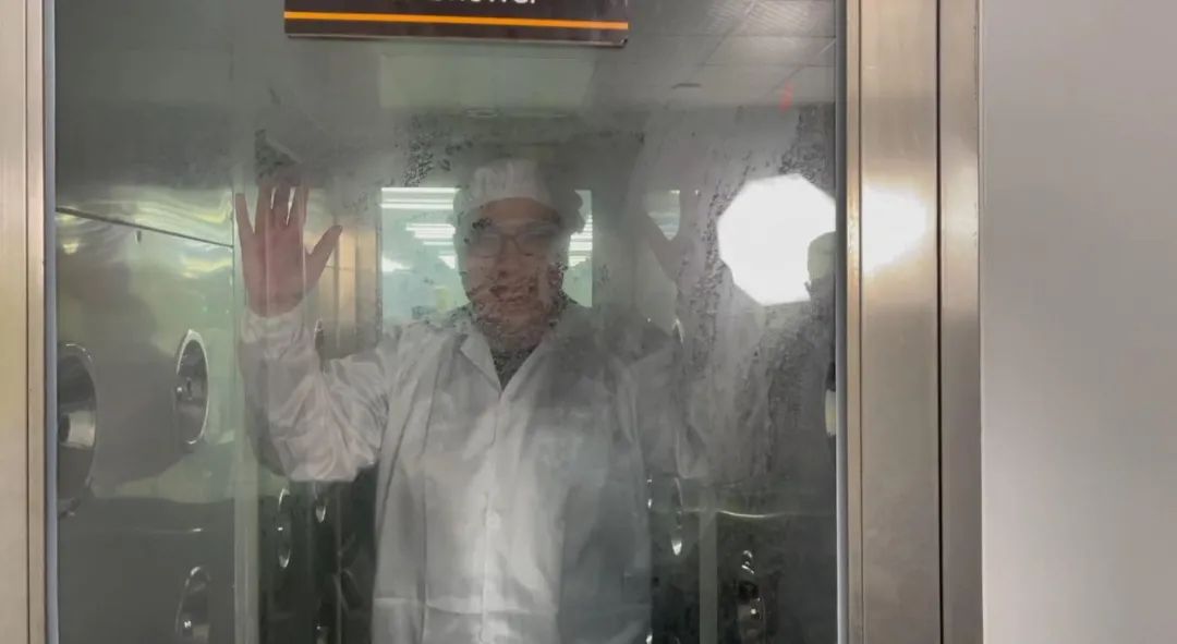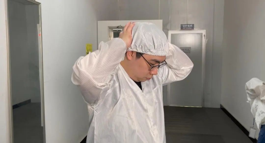 毕竟是使用大机器+自动化生产的车间,进入SMT车间之前包括通哥和聂俊在内的所有人员都需要穿上专门的防护工作服、戴上头罩、穿上鞋套,再全身除尘后才能进入。