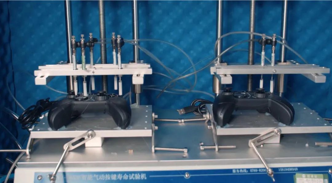 至于使用频率更高的左右摇杆,我们会对左右两边的摇杆进行不同方向各做100万次,共200万次的寿命测试。