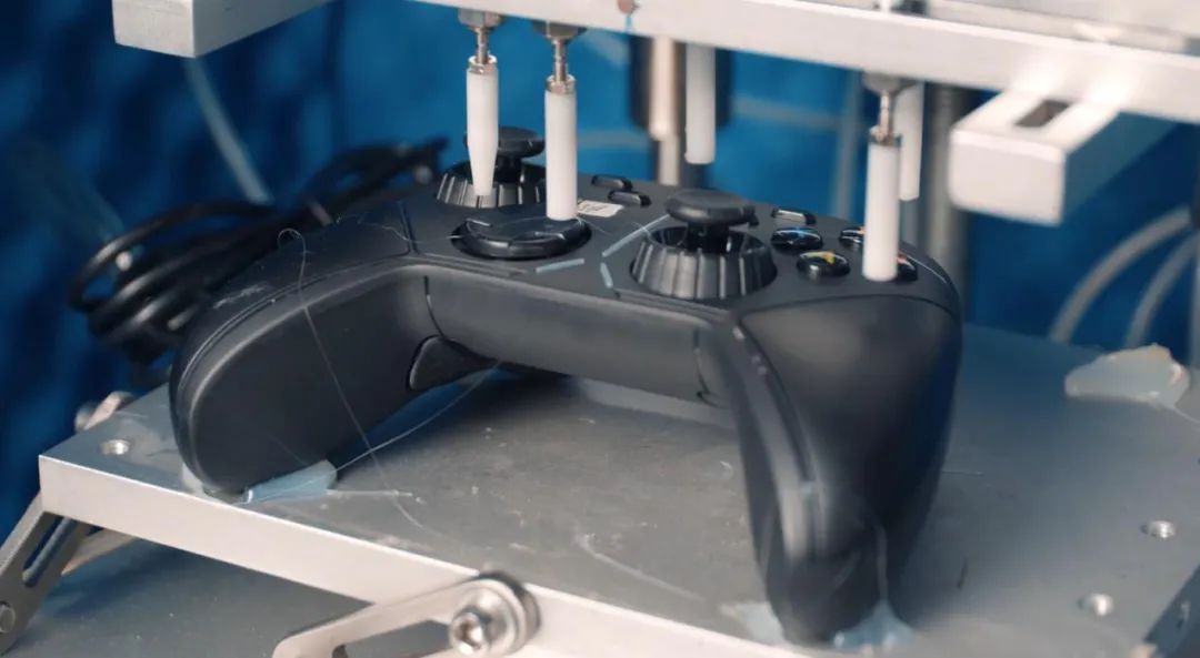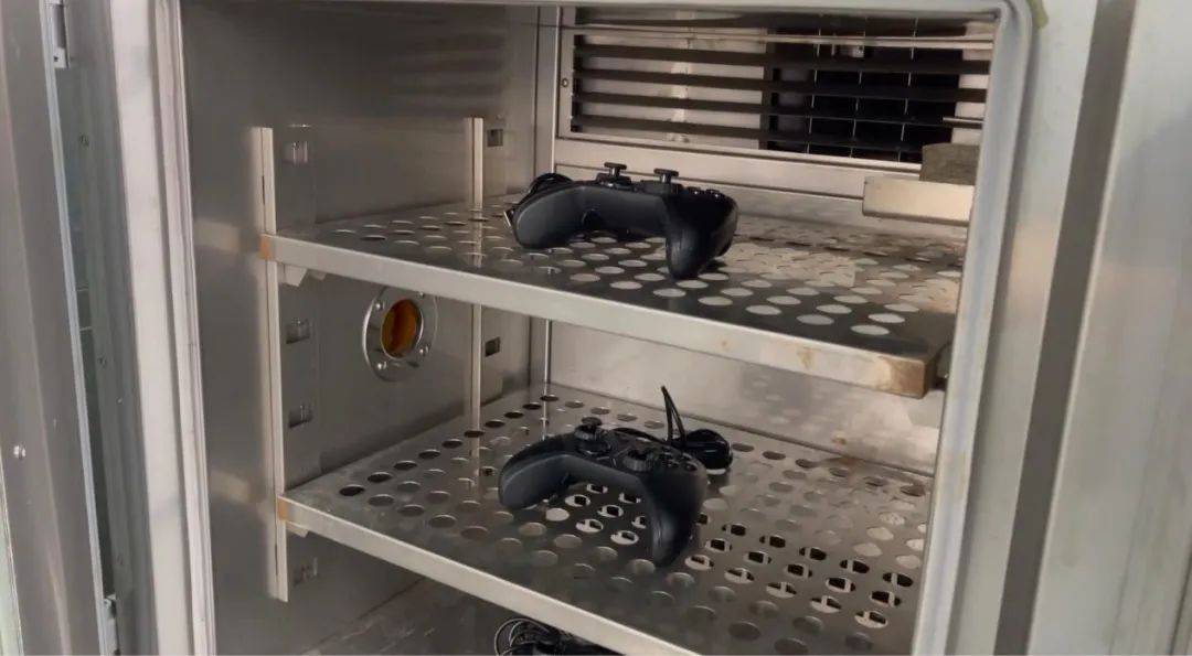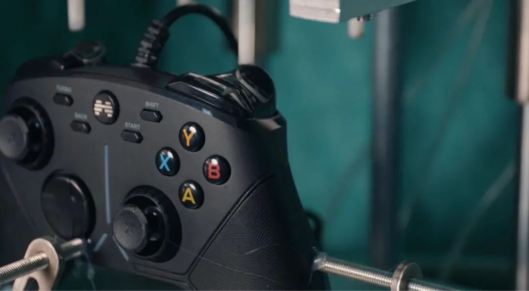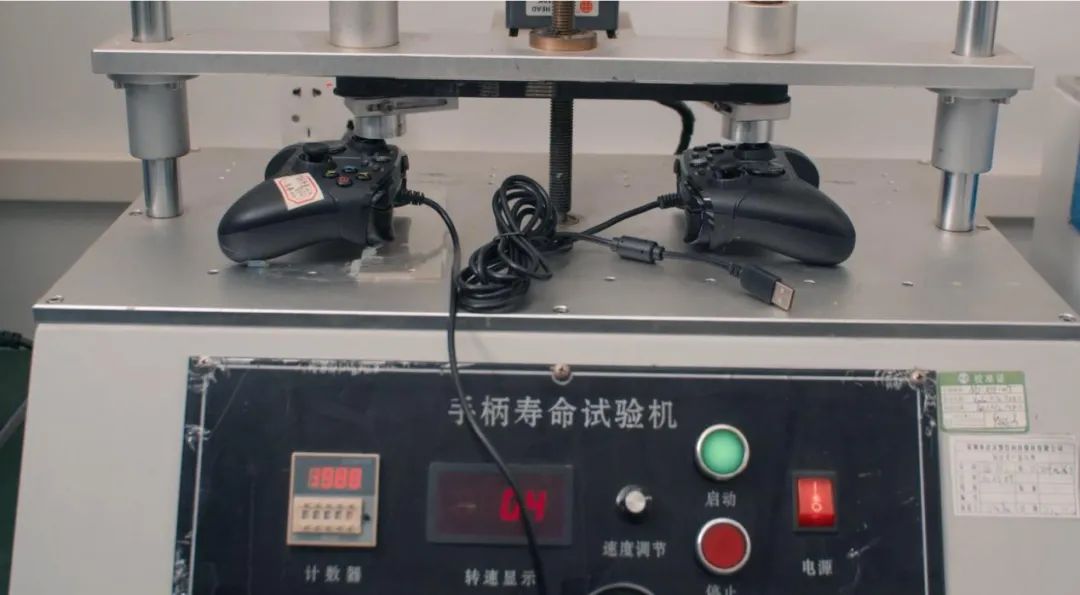 除了生产流程,生产基地里还有一个专门对手柄进行“严刑拷打”的质检区。我们会在市售的手柄中随机挑选几个出来进行严苛的品控测试,测试项目包括按键寿命、摇杆寿命、抗高低温、防潮和跌落测试等。